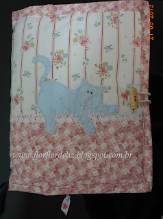 Capa de agenda em patchwork. Tecido importado, com apliques e quiltada a mão.